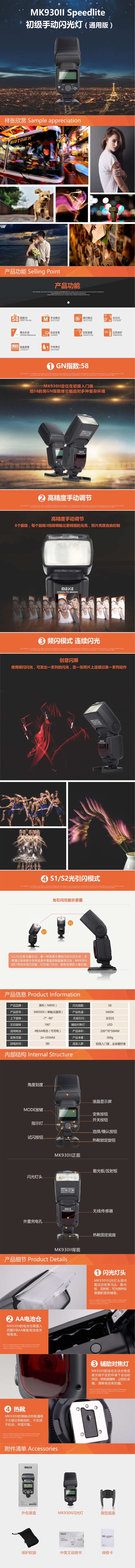 ◆ MK930II是一支新型的單觸點通用型閃光燈,它能適用于佳能、尼康、索尼、奧林巴斯、松下、富士、賓得等大部分熱靴型相機。