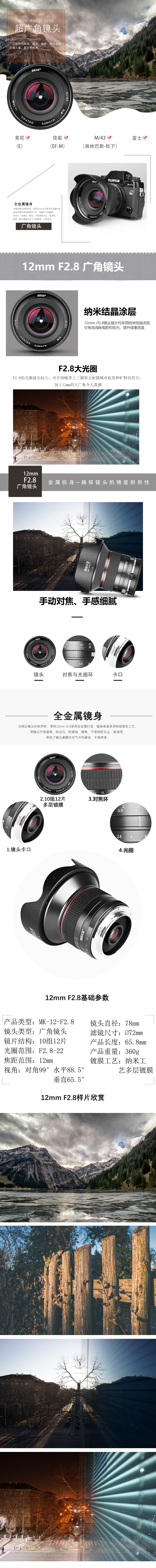 12mm F2.8 廣角鏡頭(多卡口可選)
